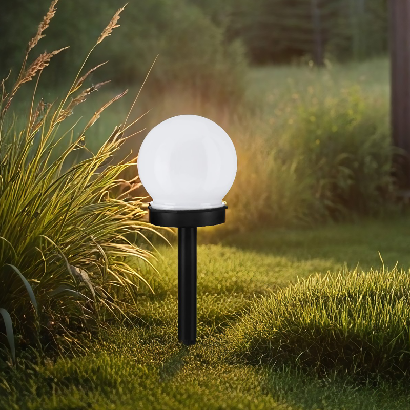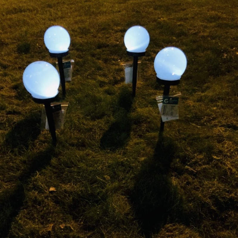 Фонарь на солнечной батарее Шар – прекрасное решение уличной подсветки, которое сделает из любого участка настоящее арт-пространство и подчеркнет красоту дорожек, клумб, строений. Классический лаконичный дизайн. Светильник накапливает солнечную энергию в течение дня и автоматически загорается с наступлением вечера. Время непрерывной работы при полном заряде: 6 часов. Размер в упаковке: 15x15x26 см (ДxШxВ). Тип товара: Фонарь садовый. Назначение: Для уличной подсветки. Тип питания: От солнечной батареи: Способ применения, дозировка: Установить в землю посредством ножки с заостренным наконечником. Материал: Пластик. Цвет: Белый. Размер: 10х10х34 см. Условия хранения: При температуре от -30 до +50. Предназначен для освещения садового участка, клумб, газона, дорожек и т.п. Тип лампы: светодиод ( LED). Количество ламп: 1 шт. Свет-белый. Солнечная панель - аморфная, 30*30 мм. Аккумулятор-NI-MH-1.2В 40 мАч. Время работы до 6 часов. Время зарядки: 10-12 часов. В комплекте: 4 штуки.