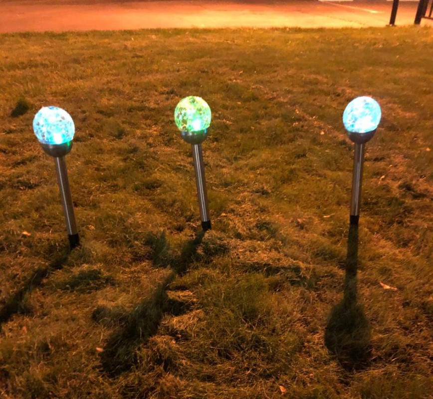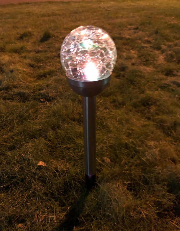 Светильник на солнечной батарее Кракле 8х8х38 cм. Назначение: Для уличной подсветки и декорирования. Тип питания: От солнечной батареи. Способ применения: Включить, установить в землю на клумбе или газоне. С наступлением темноты, светильник включается автоматически. Тип лампы: светодиод (LED). Количество ламп: 1. Свет - RGB (мультколор). Солнечная панель - аморфная; 32*32 мм. Аккумулятор- NI-MH, 1.2 В 300 мАч. Время работы - до 6 часов. Время зарядки- 10-12 часов. Материал: Стекло, сталь, пластик. Цвет: Серебряный. Размер: 8х8х38 см. Условия хранения: При температуре от -30 до +50. Светильник на солнечной батарее Кракле – прекрасное решение уличной подсветки, которое сделает из любого участка настоящее арт-пространство и подчеркнет красоту дорожек, клумб, строений. Светильник накапливает солнечную энергию в течение дня и автоматически загорается с наступлением вечера. На стекле эффект кракле. В комплекте 3 штуки.