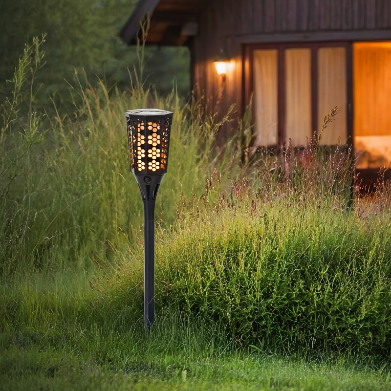 Светильник на солнечной батарее GIARDINO CLUB Пламя – прекрасное решение уличной подсветки, которое сделает из любого участка настоящее арт-пространство и подчеркнет красоту дорожек, клумб, строений. Корпус украшен ажурным узором. Светильник накапливает солнечную энергию в течение дня и автоматически загорается с наступлением вечера. Время непрерывной работы при полном заряде: 6 часов.Тип товара: Светильник садовый. Назначение: Для уличной подсветки. Тип питания: От солнечной батареи. Способ применения: Включите и разместите в выбранном месте. Для удаления загрязнений рекомендуется протереть влажной салфеткой. Материал: Пластик. Цвет: Черный. Размер: 10х10х50 см. Условия хранения: При температуре от -30 до +50. С наступлением темноты, включается автоматически. Тип лампы: светодиод (LED). Количество ламп: 12. Свет: желтый. Солнечная панель: аморфная, 45*45 мм. Аккумулятор- NI-MH, 1.2 В 300 мАч. Время работы до 6 часов. Время зарядки 10-12 часов. В комплекте 4 штуки.
