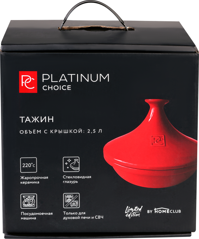Тажин керамический для духовой печи и СВЧ, объем с крышкой 2.5 л. Тажин 2.5л, керамика – практичная посуда для приготовления самых разнообразных блюд. Он защищает продукты от подгорания и обеспечивает безупречный вкус любых блюд. Керамический тажин подают на пышных торжествах, ошеломляя гостей разнообразием идей и аутентичной подачей. Состав: Каменная керамика. Размер в упаковке: 133x305x315 мм (ДxШxВ). Тип товара: Тажин. Назначение: Для приготовления блюд. Материал: Каменная керамика. Цвет: Красный. Размер: 2.5л. Возможность использования в посудомоечной машине: Да. Возможность использования в СВЧ: Да.