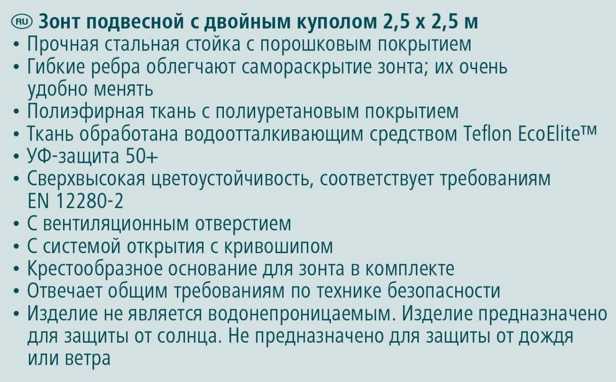 Зонт подвесной с двойным куполом 2.5 м, высота 211-270 см, серый, металл