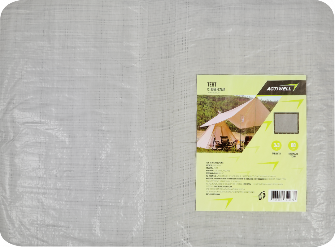 Тент с люверсами 3х3 м, плотность ткани 80 г/м², цвет серый