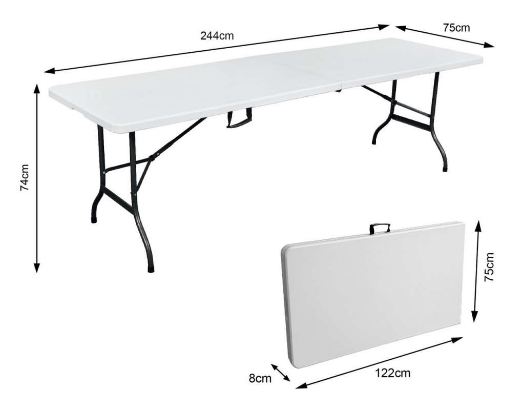 Стол складной 244 см, белый, высота 74 см, ширина 75 см