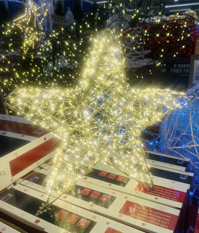 Этот подвесной рождественский декоративный светильник на присоске выполнен из прозрачного материала в виде восьмиугольной звезды в центре. Когда свет проходит сквозь него, он кажется сверкающим, создавая теплую и сказочную рождественскую атмосферу. Замысловатая текстура, подчеркнутая художественность: Внешний вид декоративного светильника украшен замысловатыми геометрическими узорами и текстурами. Эти детали создают ощущение визуальной иерархии, придают декоративному светильнику неповторимое очарование, делая оформление дома более изысканным. Вес: 350 г. Цвет: Белый. Тип установки: Стоящая. Количество режимов: 1. Количество ламп: 800. Музыкальный эффект: Нет. Размер: 30*28*5 см. Форма: Звезда. Размер упаковки: 9*31*29.5 см. Тип свечения: Статический. Тип ламп: Светодиоды LED. Назначение: Для улицы и помещения. Комплектация: Фигура звезда - 1 шт.