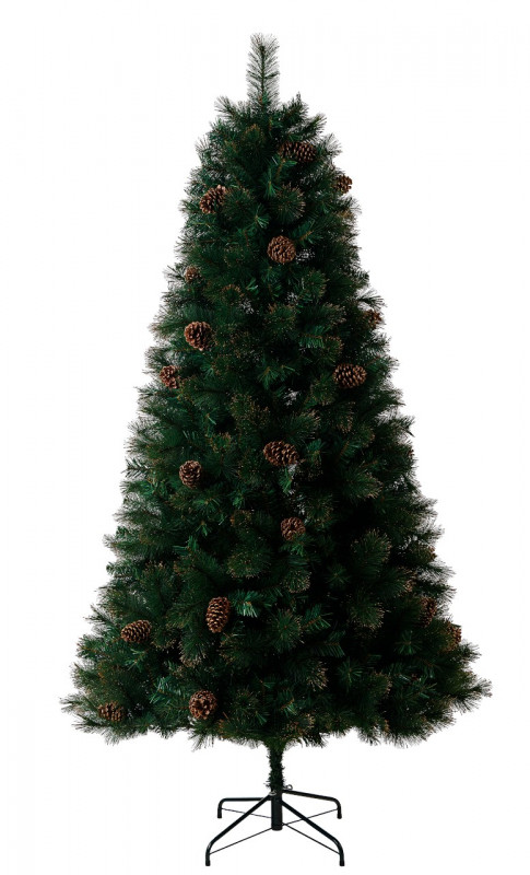 Ель искусственная с шишками, высота 210 см, ПВХ, металлическая подставка