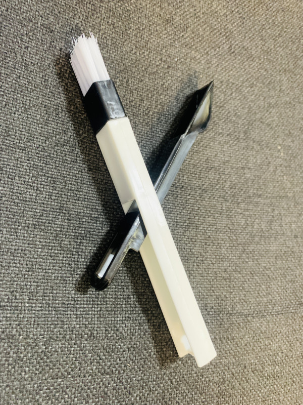 Щетка-кисть для чистки окон Gap Brush – мини инструмент для больших дел, где любая другая утварь не доберется. Идеально помогает очистить от грязи в узко доступных местах, например таких, как пазы пластиковых окон, или компьютерная клавиатура и многое другое. Каждый раз ломаешь голову, как вычистить в таких местах забившуюся грязь или пыль, щетка-кисть Gap Brush как раз для таких задач. Она очень легкая, компактная и в одном предмете сразу два удобных инструмента: щеточка и совочек-скребок. Размеры: щетка 18.5*2 см; cовок: 1.5*14 см. Материал: пластик + нейлоновая щетина.
