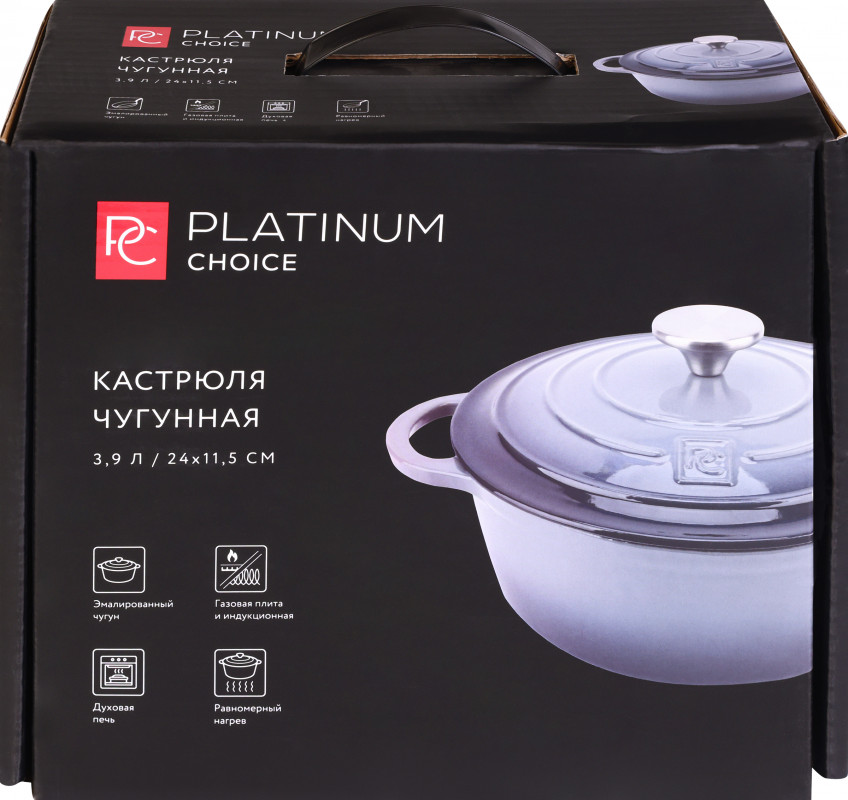 Кастрюля чугунная. Объем 3,9 л. Размер 24*11.5 см. Материал: корпус- чугун, эмаль. Ручка - нержавеющая сталь марки 201. Применение: газовая плита и индукционная, духовая печь. Цвет серый. Можно использовать на газовых, электрических, стеклокерамических плитах. Благодаря высокой теплопроводности в кастрюле готовить можно на низкой мощности плиты, что позволяет снизить затраты на электроэнергию. Равномерный нагрев. Роскошный дизайн кастрюли украсит вашу кухню или станет отличным подарком для ваших близких. Размер в упаковке: 153x270x320 мм.