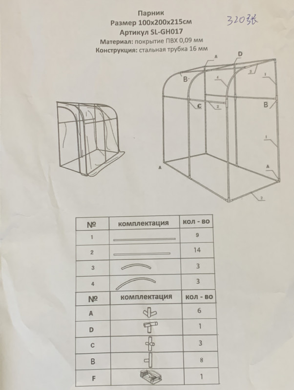 Парник для огурцов, размер 100*200*215 см, высота 215 см. Материал: покрытие ПВХ 0.09 мм. Конструкция: стальная труба 16 мм. В комплекте: один каркас с укрывным материалом. Самостоятельный монтаж ( полная инструкция прилагается). Парник собирается быстро. Высота 215 см, ширина 100 см, глубина 200 см. Вес: 4.9 кг. Вес в упаковке: 5.6 кг. В этом парнике легко выращивать высокие и вьющиеся растения. Также можете поставить в этот парник стеллаж с растениями и создать парниковый эффект. 2 входа - закрываются на замок. В жаркое время можно открывать одну из дверей или две сразу. На парнике есть веревочки на входной группе, что доставляет удобство при открытии и крепежа дверей. В комплекте также есть колышки - 4 штуки и веревки для более крепкого крепления.Цвет каркаса: зеленый. В такой парник можно заходить в полный рост, т.к. высота 215 см. Выращивание культур в этом парнике станет любимым занятием, так как удобство и комфорт точно ощутите в этом парнике. Этот парник принесет отличный урожай.
