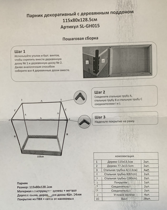 Парник для томатов с деревянным поддоном, размер 115*80*128.5 см, дерево, металл
