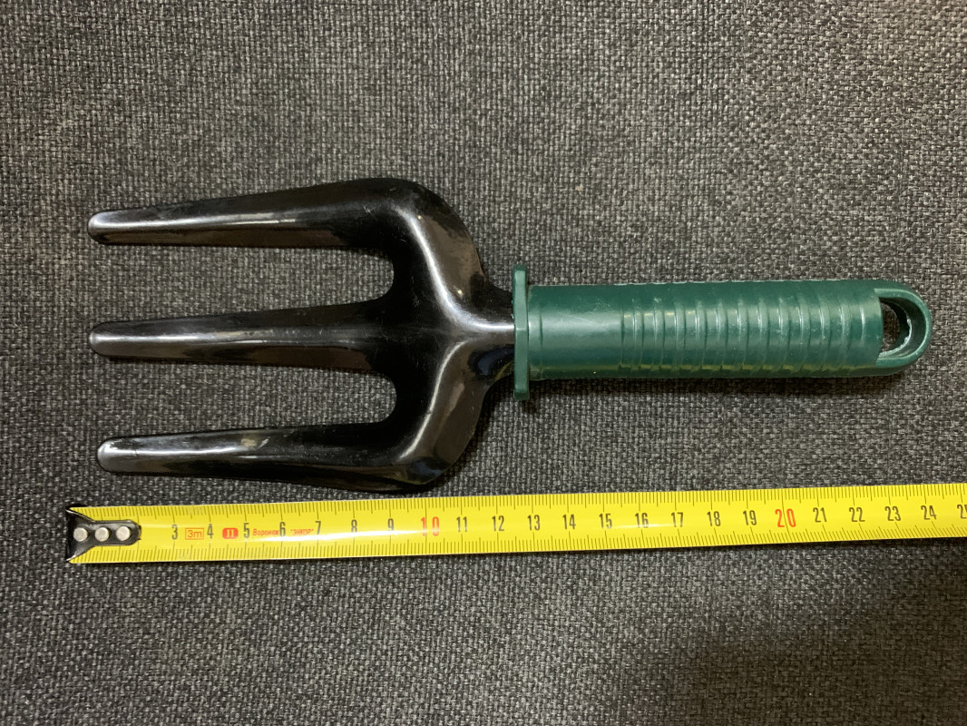 Вилка для садовых работ. Материал: сталь, полипропилен.Размер 24 см. вилка посадочная предназначена для ухода за растениями. С этой вилкой можно пересадить растения, удобно расчищать корневую систему. Миниатюрный размер поможет справиться с уходом домашних комнатных растений. Вилка легко моется. Всегда можно найти место садоводу для такого маленького, но необходимого предмета. Зубцы вилки изготовлены из прочного материала стали, чем придает прочности садовому инструменту. Необходимый и нужный инструмент. Размер рабочего инструмента: 12 см. Ширина: 7.5 см. Размер ручки: 11.5 см.