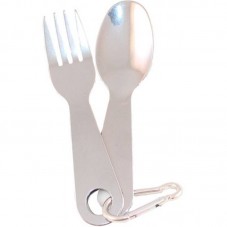 Компактный набор столовых приборов необходимых в походных условиях. Комплект: ложка, вилка, карабин. Материал: нержавеющая сталь. Длина приборов: 14 см. Вес: 76 г. В комплекте ложка, вилка-материал сталь-особенность на карабине-размеры 142х38 мм. Такой прибор, особенно, пригодится в туристическом походе, на пикнике, в дальнем путешествии. Легкий вес и маленький размер. Приборы расположены на карабине, который можно прикрепить к рюкзаку или другому аксессуару. Цвет: серебристый. Выполнен из высококачественной стали.