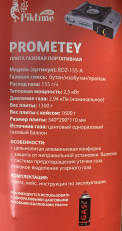 Плита газовая портативная PIKTIME Prometey работает от одноразового баллона и потребляет газовую смесь в количестве 155г/ч. Тепловая мощность прибора составляет 2,5кВт. Плита снабжена пьезоподжигом, защитой от неправильной установки баллона и повышенного давления газа, системой предотвращения утечки газа. Поставляется в пластиковом кейсе с обечайкой. Состав% холоднокатанная сталь 0.5 мм, конфорка - литой алюминий, пластик. Размер в упаковке: 350x310x90 мм. Назначение: Для приготовления пищи. Материал: Холоднокатаная сталь 0,5мм, конфорка – литой алюминий. Цвет: Серебристый. Размер: 35х31х9см. Условия хранения: В сухом проветриваемом месте отдельно от газового баллона, при температуре до +40, вдали от детей.Вид упаковки: Кейс.