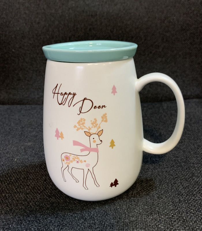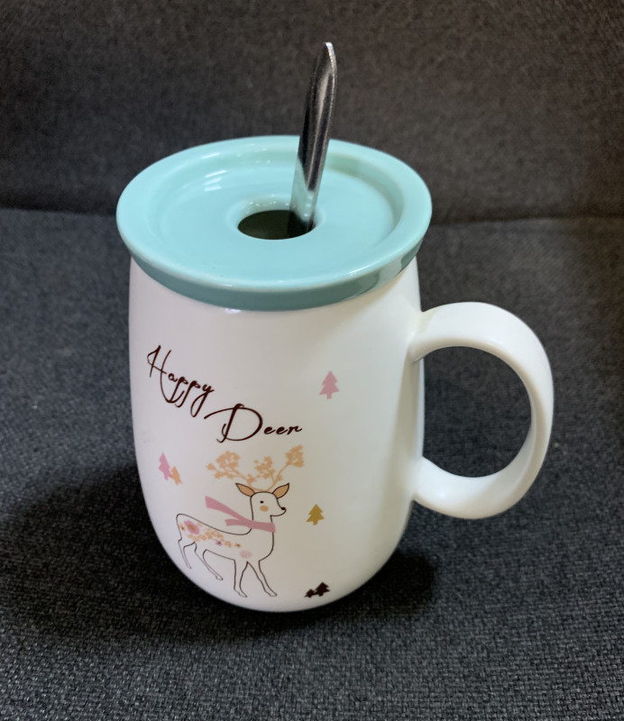 Кружка с крышкой и ложкой. Объем: 350 мл. Материал: керамика.