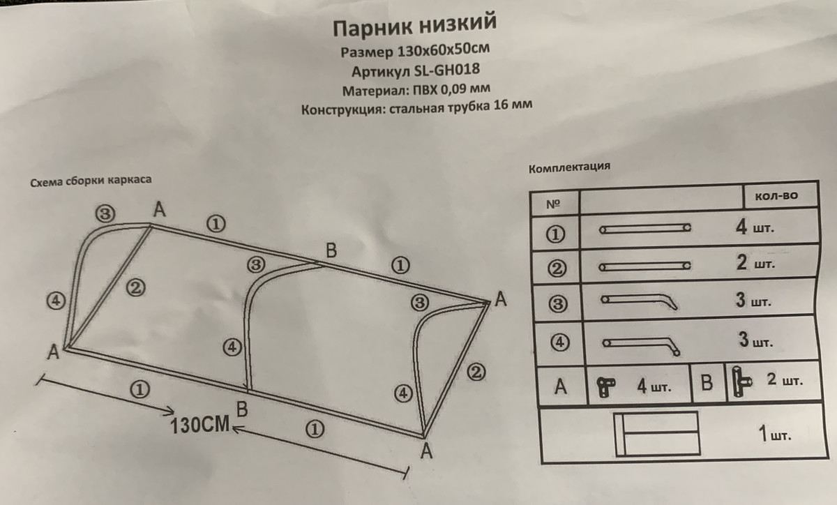 Парник для растений 130*60*50 см, стальной каркас, труба 16 мм