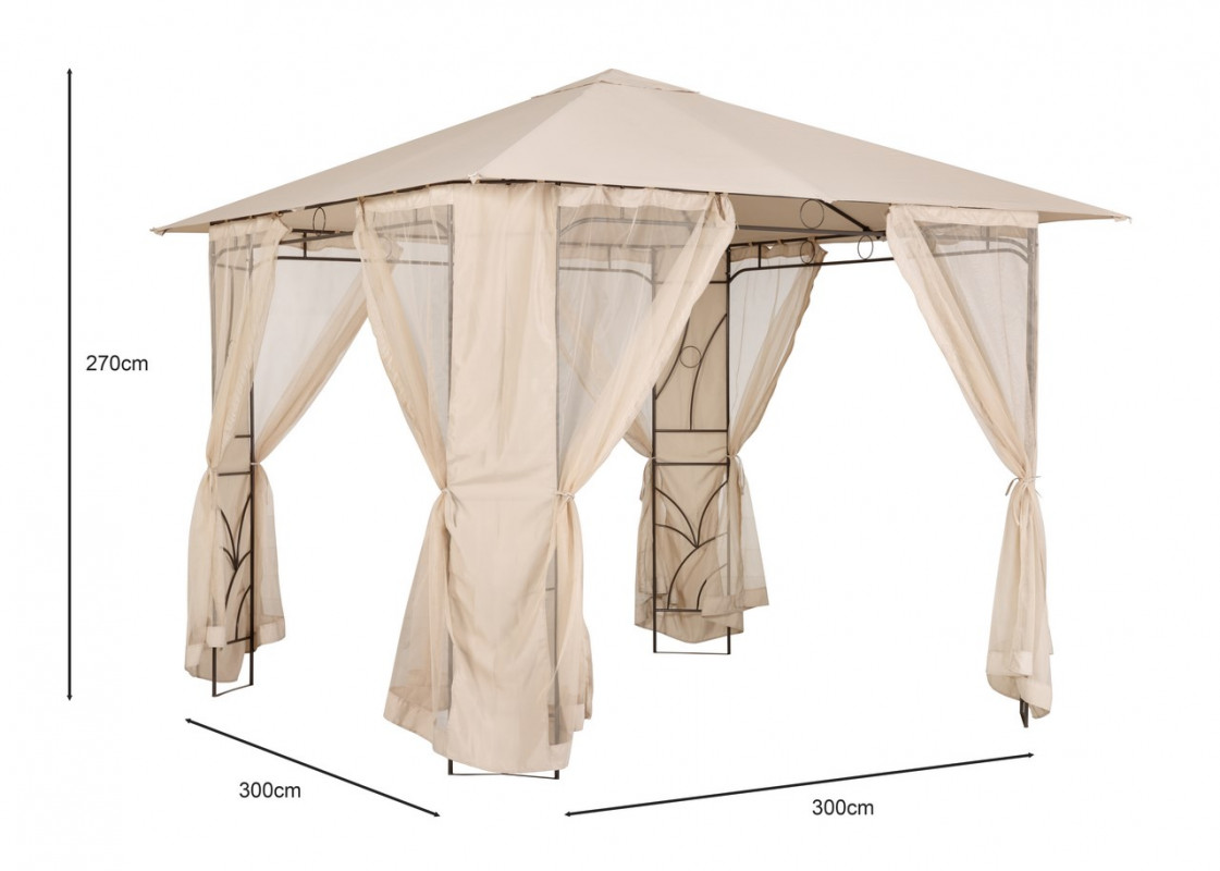 Павильон садовый бежевый 270 х 300 х 300 см, антимоскитные шторы